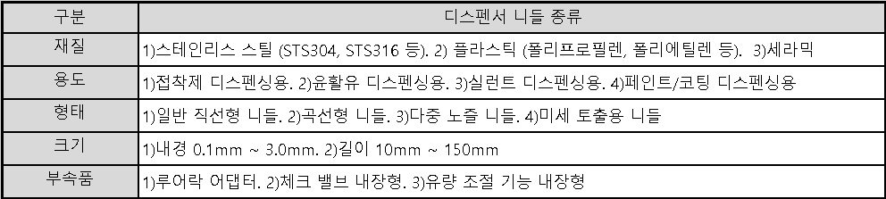 첫째, 니들의 재질은 분배하려는 물질의 화학적 특성과 호환되어야 합니다.