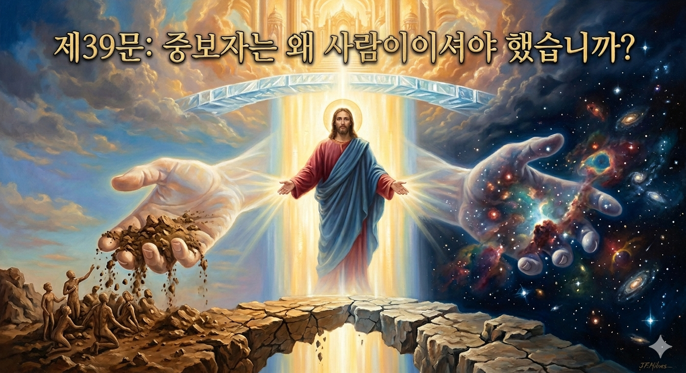 대요리문답 제39문은 예수 그리스도가 왜 반드시 우리와 똑같은 성정을 가진 '사람'이어야 했는지, 그 눈물겨운 사랑과 공의의 이유를 설명해 줍니다.