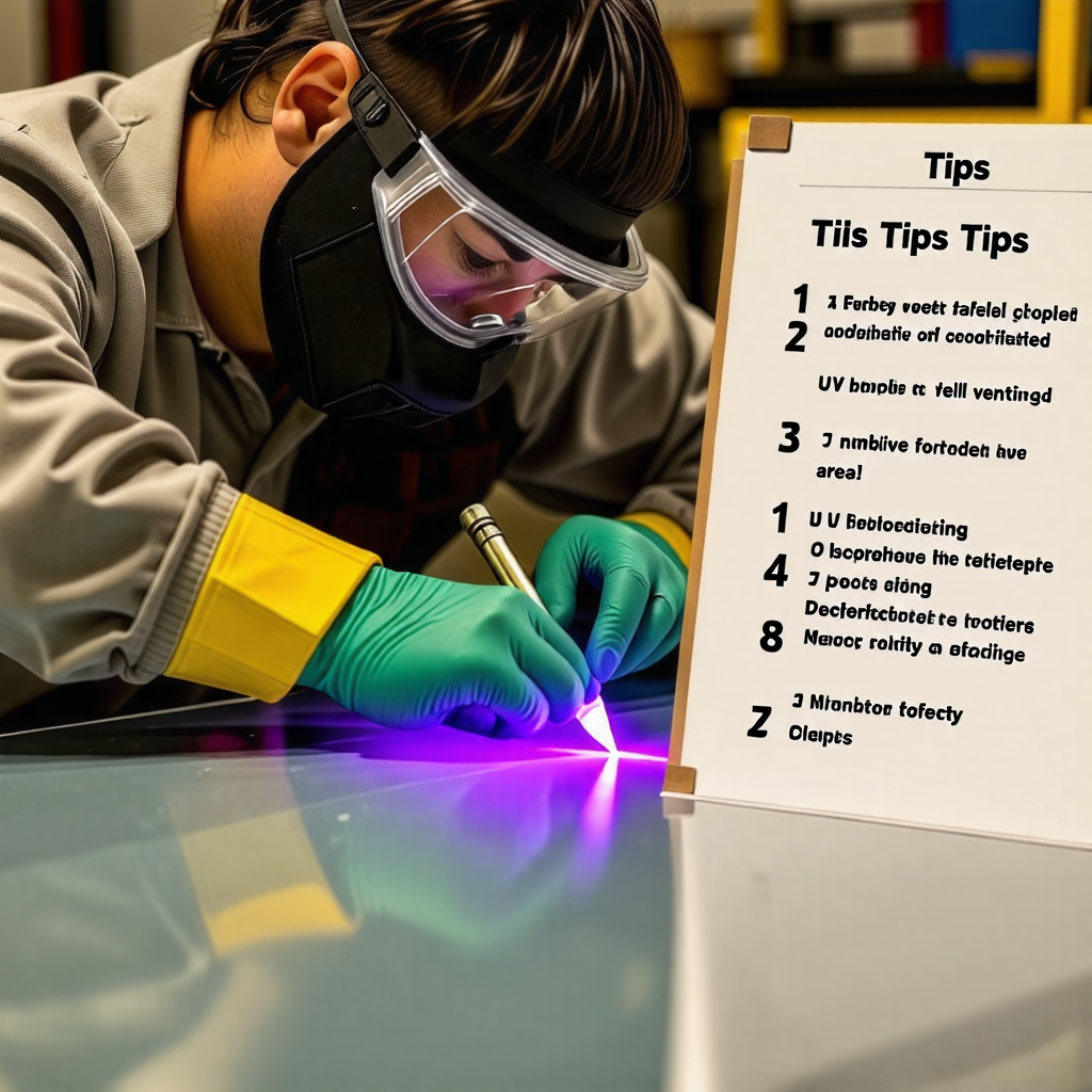 자외선 접착제를 사용할 때는 안전을 위해 몇 가지 수칙을 반드시 준수해야 합니다. 자외선 빛은 피부와 눈에 해로울 수 있으므로, 보호 안경과 장갑을 착용하는 것이 필수적입니다. 또한, 자외선 접착제를 사용할 때는 환기가 잘 되는 곳에서 작업하여 화학 물질의 흡입을 최소화해야 합니다.