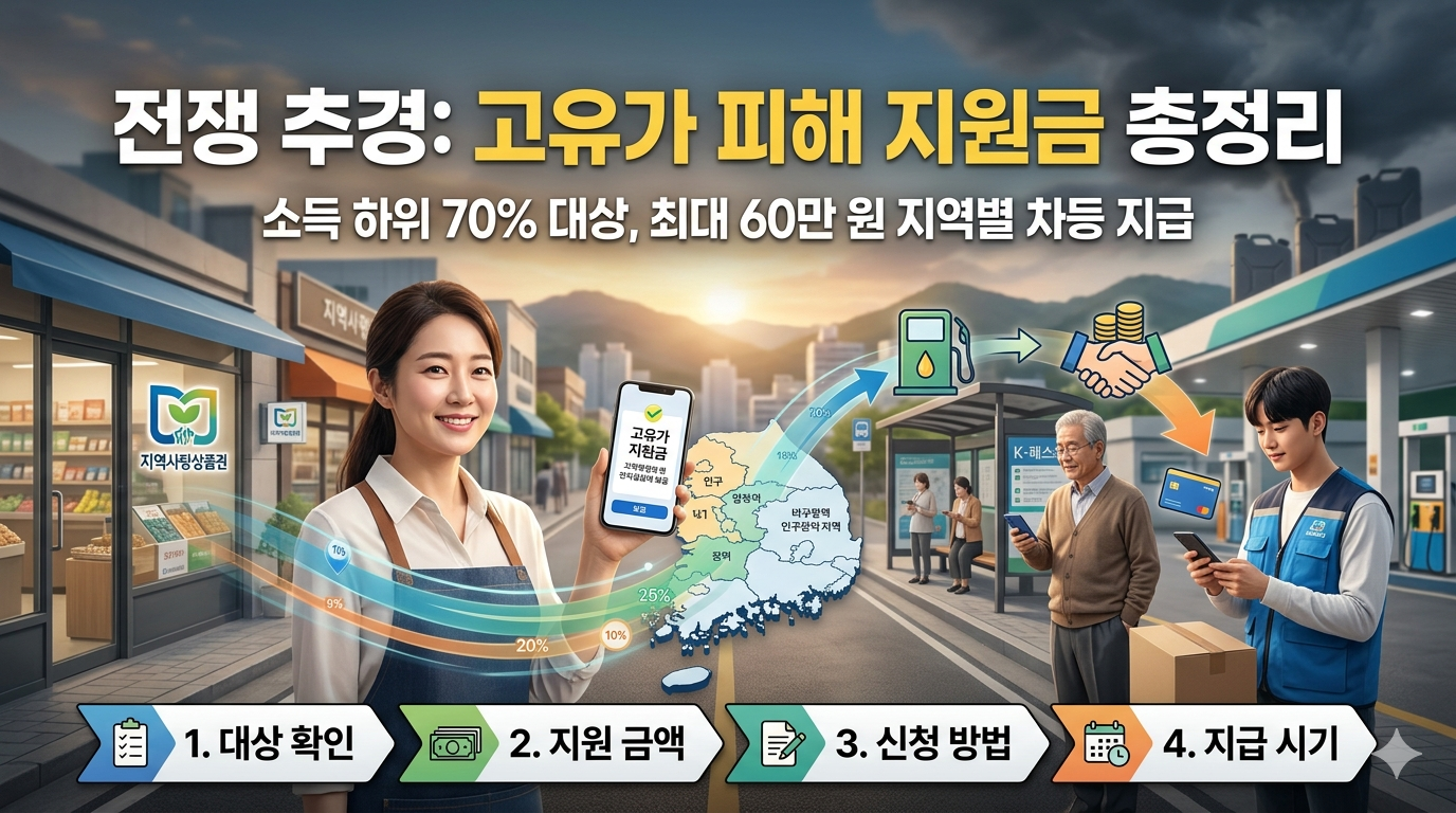 가장 큰 관심을 끄는 것은 역시 직접적인 현금 지원인 **'고유가 피해 지원금'**입니다. 과연 나는 지원 대상에 포함되는지, 얼마를 받을 수 있고 언제 신청해야 하는지, 정부 발표안을 중심으로 상세히 정리해 드립니다.