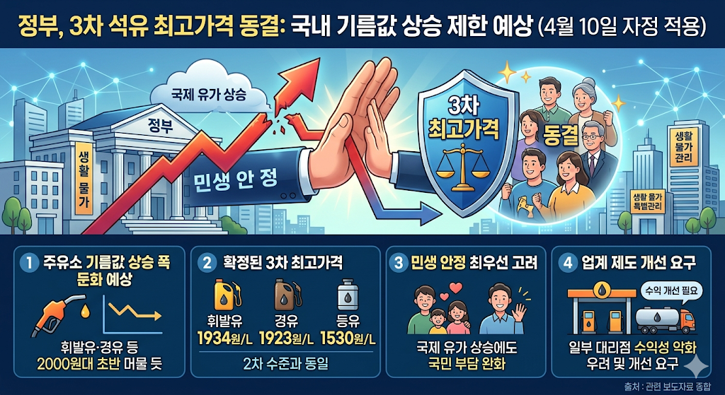 안녕하세요! 요즘 주유소 가기 무섭다는 분들 참 많으시죠? 국제 유가 상승세가 심상치 않은 가운데, 정부가 민생 안정을 위해 **'3차 석유 최고가격 동결'**이라는 카드를 꺼내 들었습니다.