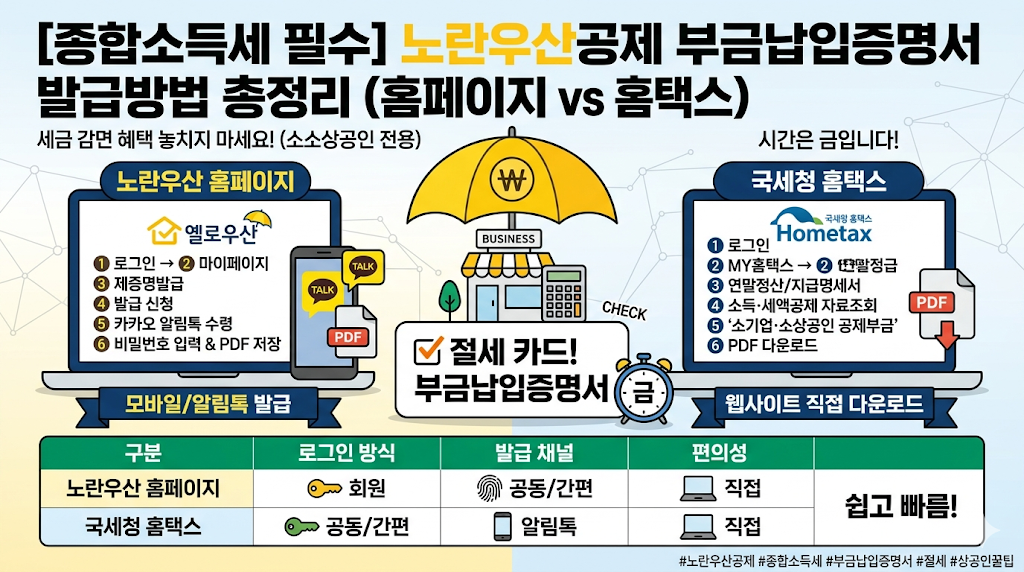 | 구분 | 노란우산 홈페이지 | 국세청 홈택스 |